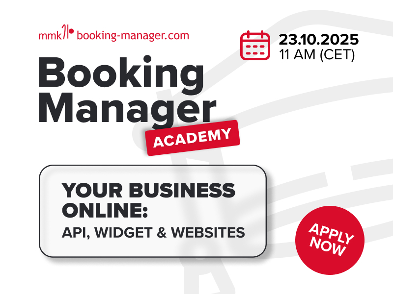 By the end of this workshop, you'll be equipped with powerful digital tools to boost your visibility, improve user experience, and drive more direct bookings. Learn how to transform your online strategy at the Booking Manager Academy Online Event - held on October 23rd at 11:00 am (CET).